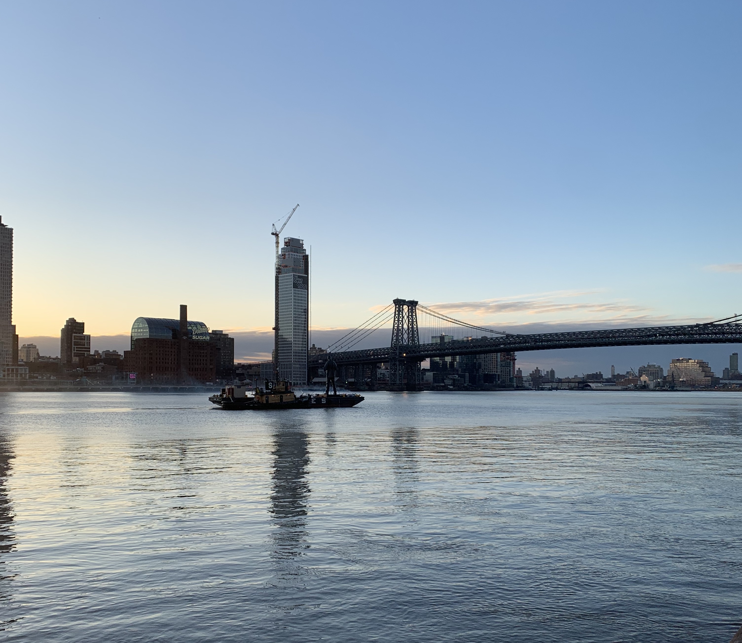 A giant on a barge, at 7 in the morning.